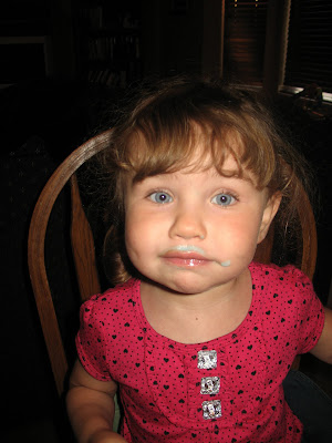 That night we went to eat at Wingers and then picked up ice cream at Coldstone. As soon as Aubrey saw the selection she immediately wanted blue ice cream. I had her share with Brooke. Oh what a blue mess she was, because of course, she had to feed herself.